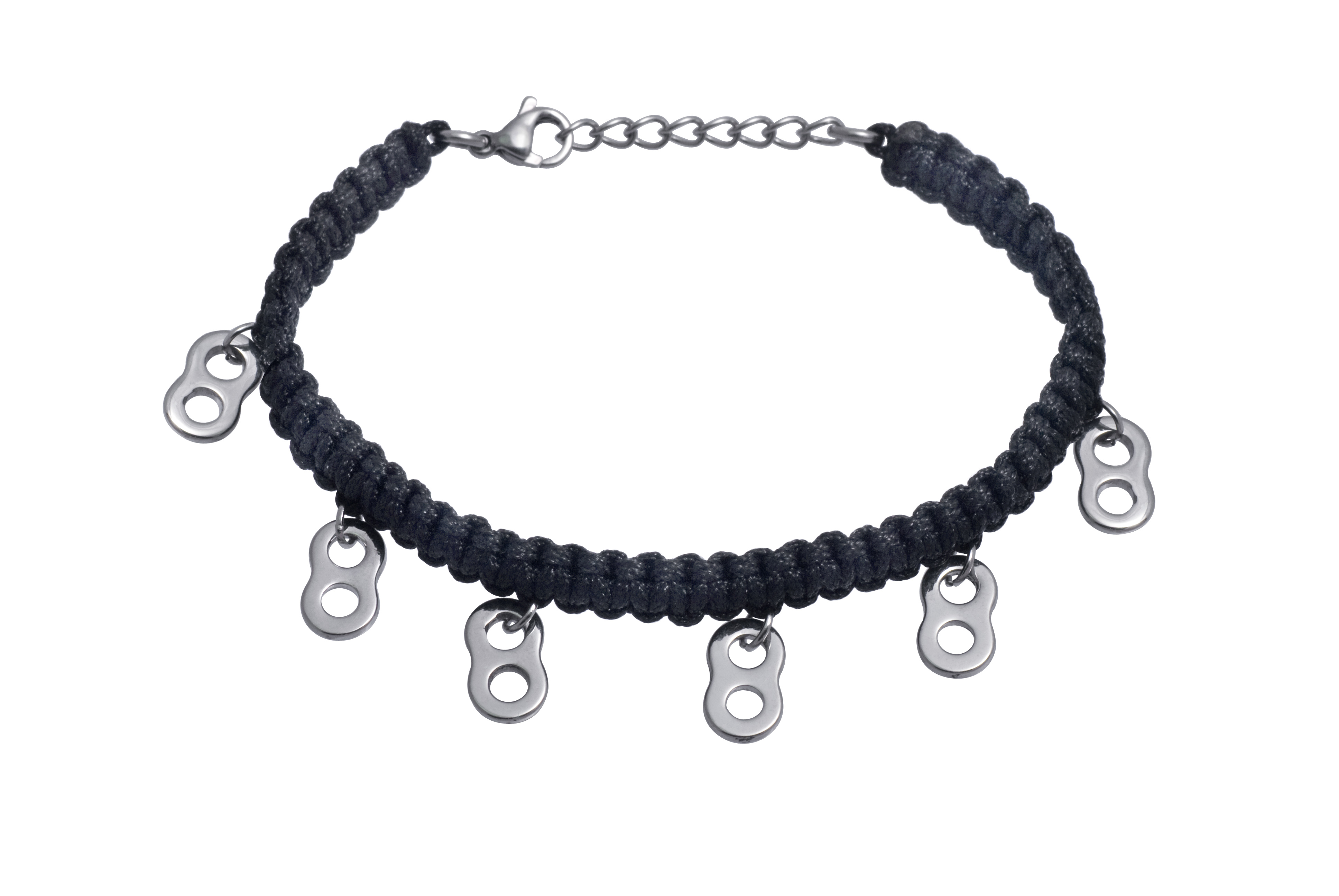 Stainless Steel Bracelet WITH BLACK COTTON STRING WITH 6 ?EIGHT? SHAPE / INFINITY SIGN CHARM