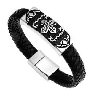 STAINLESS STEEL BRACELET IN BLACK PU WITH CROSS PLATE WITH MAGNET LOCK