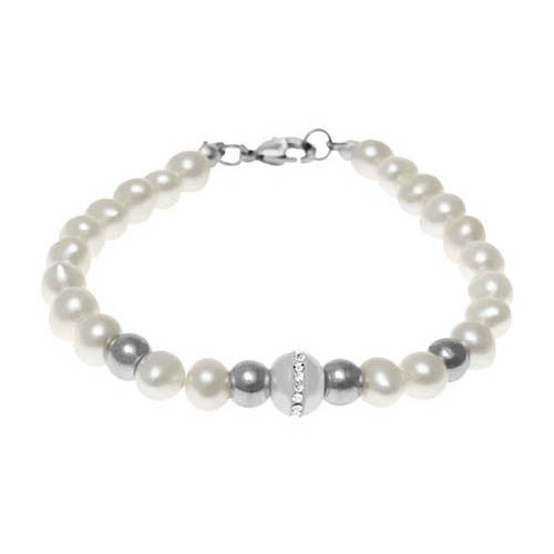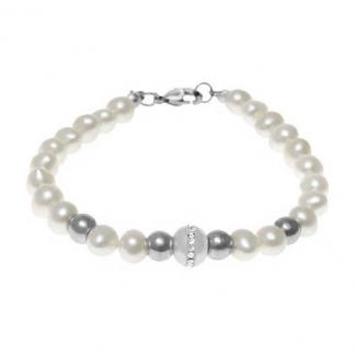 STAINLESS STEEL BRACELET WITH ALL RIVER PEARL WITH CZ WITH S/S BEADS