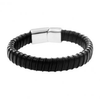 STAINLESS STEEL BRACELET WITH BLACK LEATHER WITH MAGNET LOCK