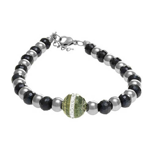 STAINLESS STEEL BRACELET WITH CRYSTAL BALL WITH CZ IN CENTER WITH CRTSTAL & S/S BEADS