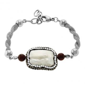 STAINLESS STEEL BRACELET WITH GARNET AND PEARL