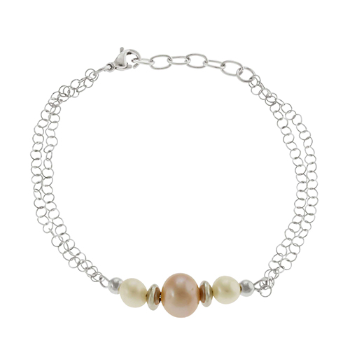 STAINLESS STEEL BRACELET WITH NATURE PEARL IN WHITE AND ROSE COLOR