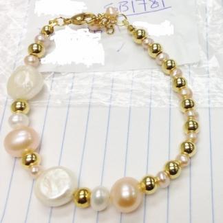 STAINLESS STEEL BRACELET IN IPG COLOR. WITH NATURE PEARL IN WHITE &ROSE COLOR