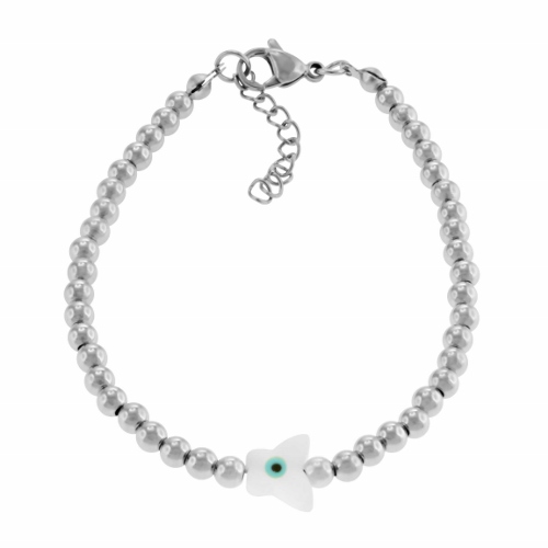 STAINLESS STEEL BRACELET WITH 4MM STEEL BALL AND BUTTERFLY SHAPE SHELL IN THE CENTRE