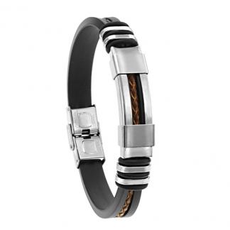 STAINLESS STEEL BRACELET WITH PU AND ONE LEATHER IN THE CENTRE