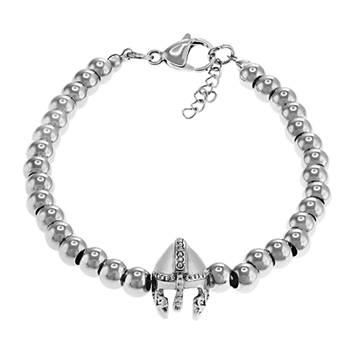 STAINLESS STEEL BRACELET WITH BEADS AND ONE HELMET IN THE CENTER.