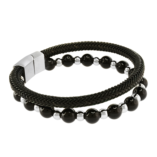 STAINLESS STEEL BRACELET WITH ONE ROW WITH TIGER EYE STONE & STEEL BEADS
