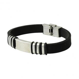 Stainless Steel Bracelet PU with centre plate with cross & bible verse