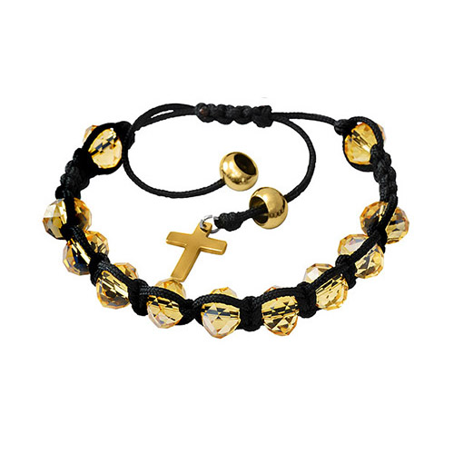 Stainless Steel Bracelet Cotton cord with Stones n different Colors with IPG hanging cross & beads