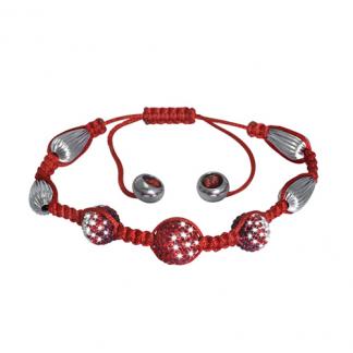 Stainless Steel Bracelet With 1 red crystal ball in outer dia. 12mm in Centre and 2 red crystal ball in outer dia. 10mm with Stainless steel |