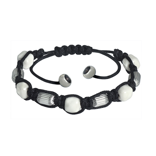 Stainless Steel Bracelet With 5 pcs of white square ball in outer dia. 11mm with stainless steel