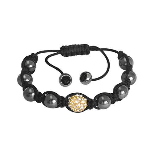 Stainless Steel Bracelet With one crystal ball with cz in centre in outer dia. 12mm & 8 Hematite balls in outer dia. 10mm with stainless Steel