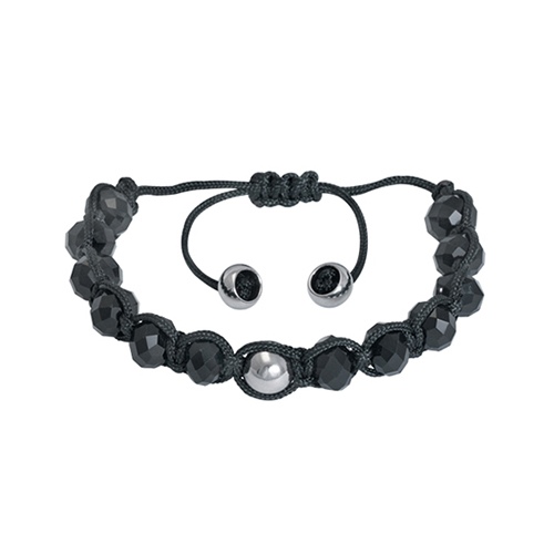Stainless Steel Bracelet With central one stainless steel ball and the crystal Stones (onyx) in 10mm and 2 stainless steel balls at the extreme In 8mm