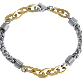 Stainless steel bracelet 2 style chains in one bracelet in IPG two tone