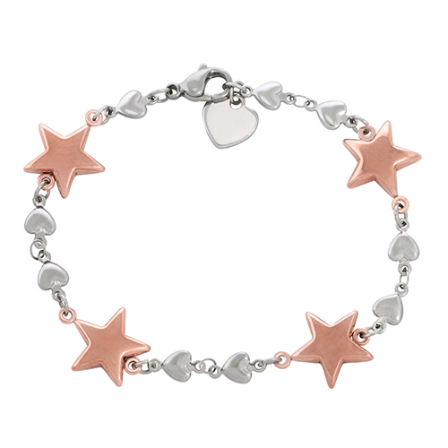 Stainless Steel Bracelet IN IPG 2 TONE WITH 4 STARS AND HEARTS