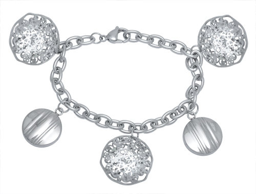 Stainless Steel Bracelet IN ALL S/S COLOR WITH 5PCS OF CIRCLE WITH CZ