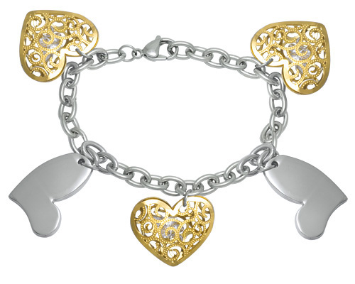 Stainless Steel Bracelet IN IPG 2 TONE WITH 3PCS OF HEART AND 2 PCS OF HEART WITH CZ