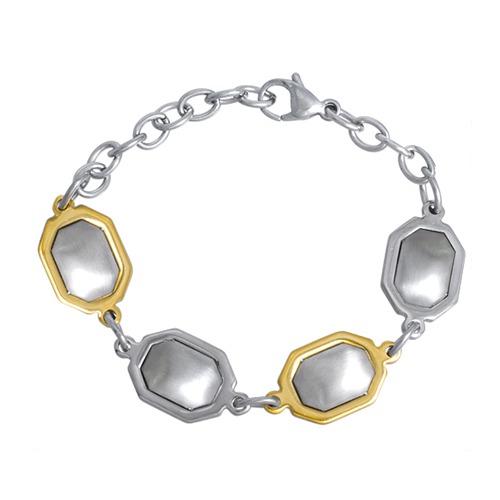 Stainless Steel Bracelet in IPG two tone with 4 OCTAGON SHAPE (2 polish & 2 Satin)