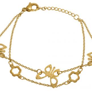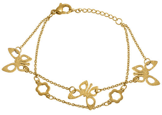 Stainless Steel Bracelet WITH 3 BUTTERFLY POLISH WITH SANDBLAST WITH TWO CHAINS ALL IN IPG