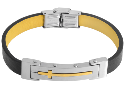 Stainless Steel Bracelet WITH CENTRE PLATE WITH CROSS PATTERN IN IPG 2 TONE