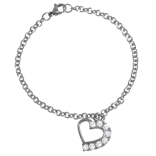 Stainless Steel Bracelet WITH HEART SHAPE CHARM WITH 8 CZ ALL IN STEEL COLOR