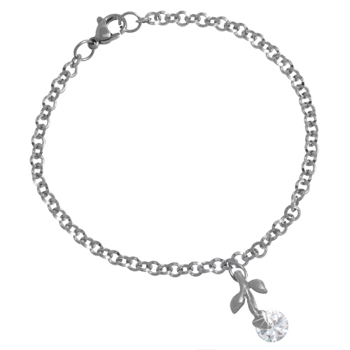 Stainless Steel Bracelet WITH CHERRY SHAPE CHARM WITH 1 BIG CZ ALL IN STEEL COLOR