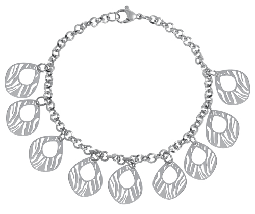 Stainless Steel Bracelet WITH 9 DROP SHAPE CHARM WITH ANIMAL SKIN ZEBRA PATTERN ALL IN STEEL COLOR