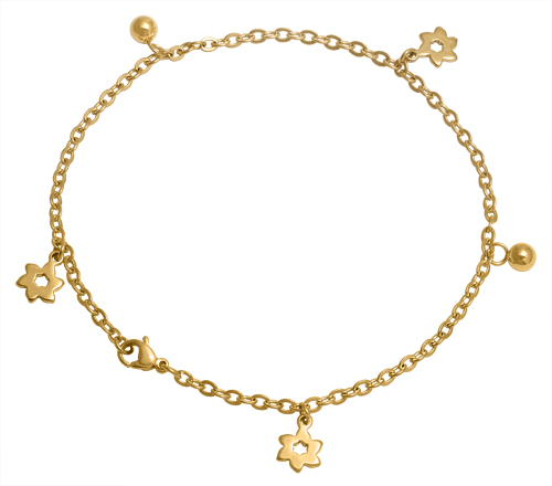 Stainless Steel Bracelet WITH 3 FLOWER & 2 S/S BEADS ALL IN IPG