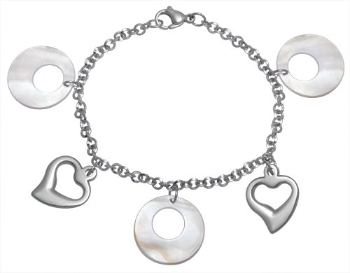 Stainless Steel Bracelet WITH 3 CIRCLE SHELL PIECE WITH 2 HEART IN S/S