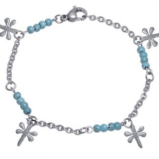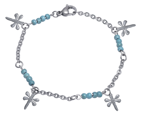 Stainless Steel Bracelet WITH 4 DRAGONFLY WITH 4 SETS OF TURQUOISE STONE