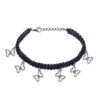 Stainless Steel Bracelet SHAMBALLA BRACELET WITH BLACK COTTON STRING WITH 6 BUTTERFLY CHARM