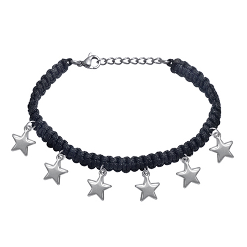 Stainless Steel Bracelet SHAMBALLA BRACELET WITH BLACK COTTON STRING WITH 6 STAR CHARM