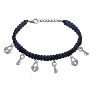 STAINLESS STEEL SHAMBALLA BRACELET WITH BLACK COTTON STRING WITH 3 KEY & 3 LOCK CHARM