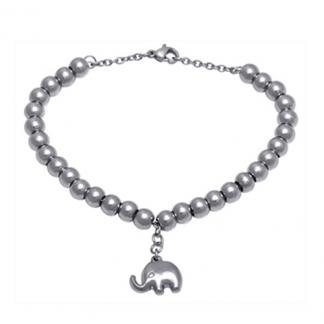 STAINLESS STEEL BRACELET WITH S/S BEADS WITH ELEPHANT CHARM ALL IN STEEL COLOR