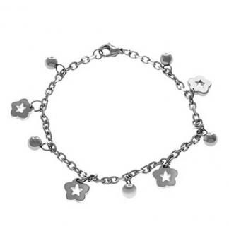 STAINLESS STEEL BRACELET WITH FLOWER CHARMS WITH 5 BEADS