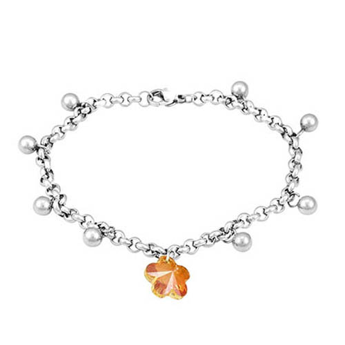 STAINLESS STEEL BRACELET WITH S/S BEADS WITH SWAROVSKI CRYSTAL IN FLOWER SHAPE ALL IN STEEL COLOR