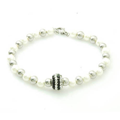 STAINLESS STEEL PEARL BRACELET WITH PEARL COLOR BEADS WITH S/S BEADS WITH STAINLESS STEEL PENDANT WITH CZ