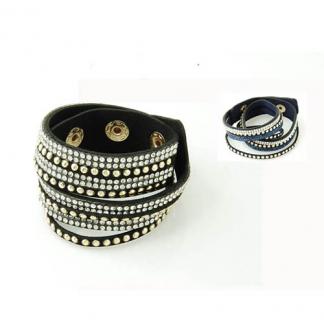 STAINLESS STEEL STRAND BRACELET WITH 2 STRIP OF S/S BEADS WITH 2 STRIP OF CZ WITH 3 BUTTONS