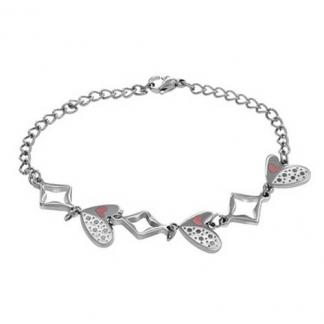 STAINLESS STEEL BRACELET WITH HEART PENDANT IN ENAMEL PINK WITH SQUARE PENDANT IN STEEL COLOR