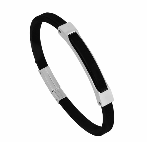 STAINLESS STEEL BRACELET WITH BLACK PU