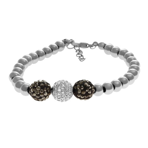 STAINLESS STEEL BRACELET ALL IN S/S COLOR WITH 3 SPHERES OF CRYSTAL BLACK & WITH.