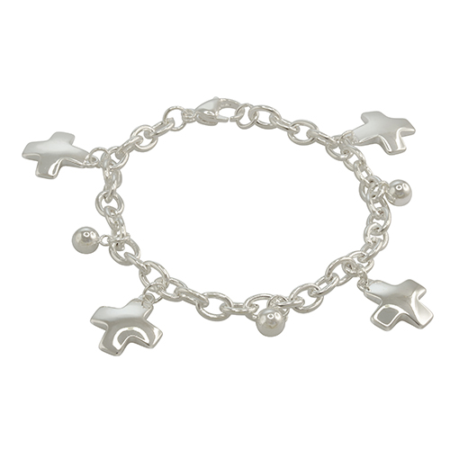 STAINLESS STEEL BRACELET WITH 4 CROSS CHARMS AND 3 STEEL BALL IN 8MM. THE CROSS SIZE: 15*15*2.8MM