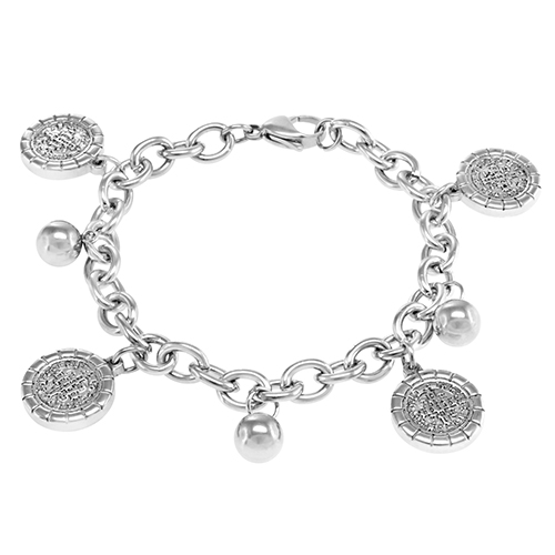 STAINLESS STEEL BRACELET WITH SAN BENITO CHARMS ALL IN SS COLOR.