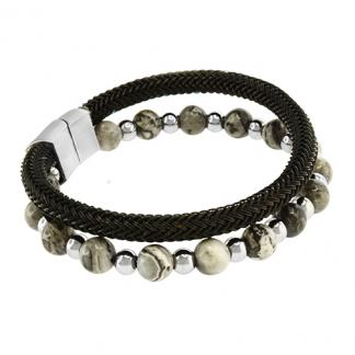 STAINLESS STEEL BRACELET WITH ONE ROW WITH NATURE STONE & STEEL BEADS