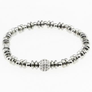 STAINLESS STEEL ELASTIC BRACELET WITH STEEL BEADS AND CENTER WITH ONE COPPER BEAD WITH ZIRCON