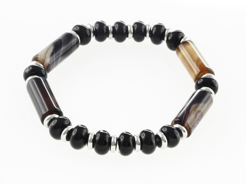 STAINLESS STEEL ELASTIC BRACELET WITH ONYX AND STEEL BEADS