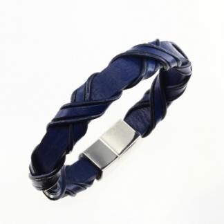STAINLESS STEEL LEATHER BRACELET IN BLUE COLOR
