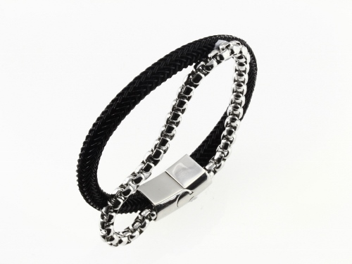 STAINLESS STEEL BRACELET WITH BLACK WIRE AND STEEL CHAIN
