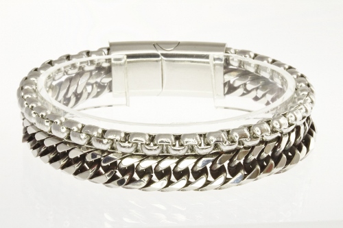 STAINLESS STEEL BRACELET WITH 2 CHAIN